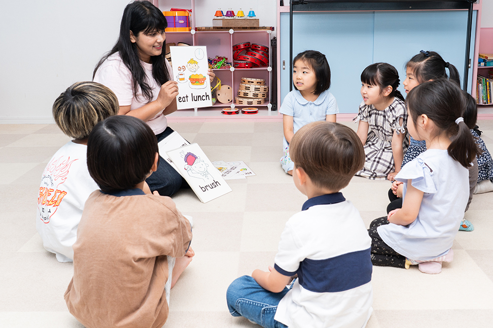 歌・フォニックス・絵本・ロールプレイなど多様なアプローチで、楽しさの中から自信と基礎力を伸ばします。